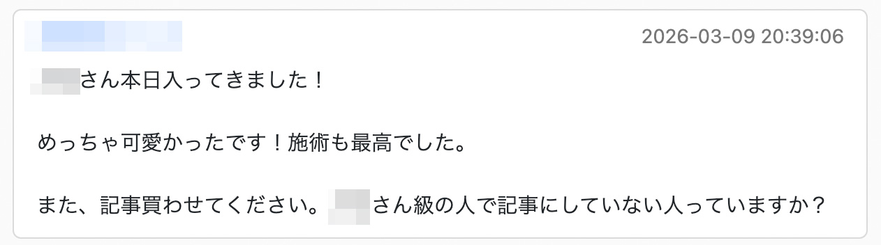 この記事を実際に買ってこのセラピストに会いに行った読者からも、『めっちゃ可愛かったです』という成果報告ももらってます。